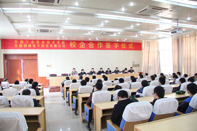 为加强校企合作,促进职业教育事业的健康发展,培养更多符合市场需要的人才,11月26日上午,学院与安徽铜峰电子股份有限公司正式签订校企合作协议,组建“铜峰电子班”。