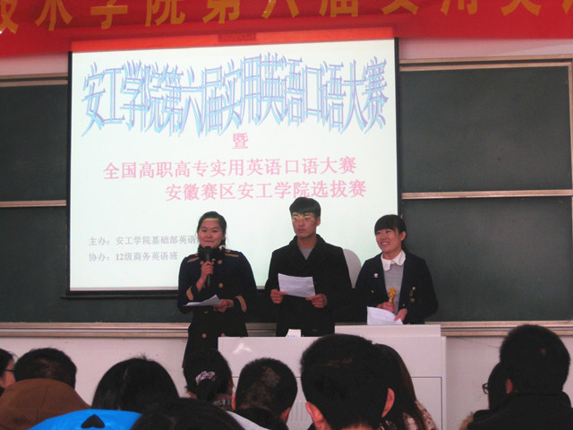本次竞赛内容为本学期课堂上的教学主题和学生的口语话题。演讲内容贴近大学生的生活,综合反映了学生的英语语言运用能力。英语口语大赛是我院开展的第二课堂重要组成部分,营造了良好的学习氛围,为我院大学生提供了一个展现自我、互相交流的舞台。(稿件来源:基础部)