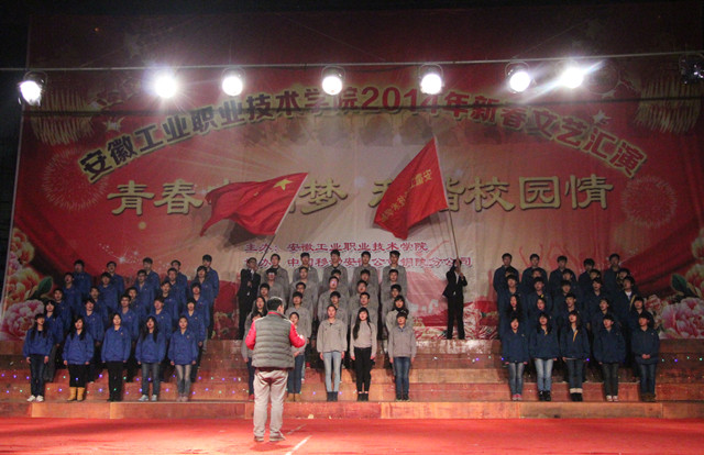 在众人的期盼下,演出在大学生艺术团《盛世鼓舞》鼓乐的恢弘气势中拉开帷幕。院长陈世虎代表院领导班子向全院师生致以新年贺词。
