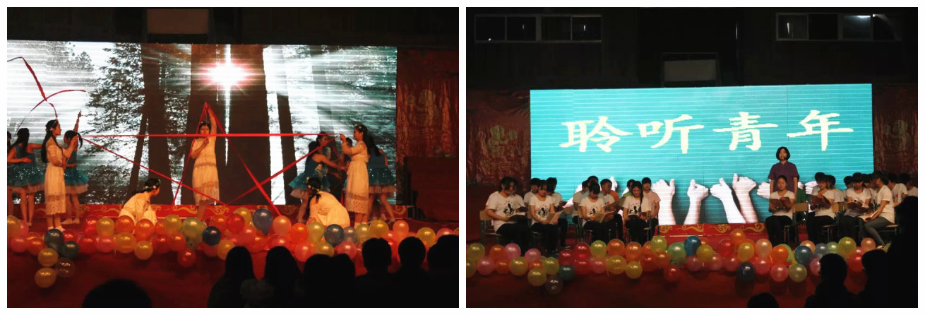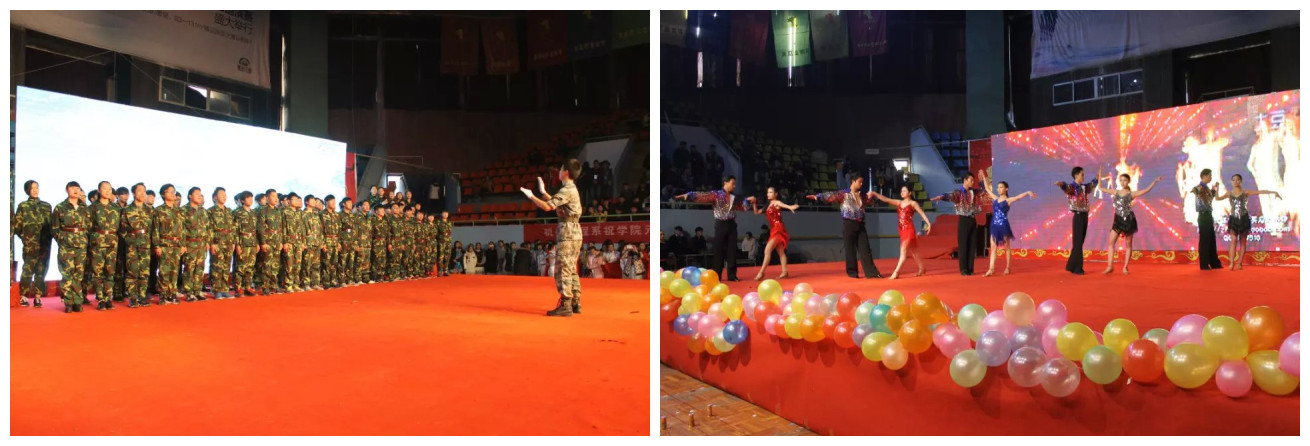 演出内容丰富多彩,气氛活泼热烈。大学生艺术团带来的《落花情》和管理系报送的《森林狂想曲》为代表的舞蹈类节目唯美动人、婀娜多姿;相声《咱爷爷》讲述的是两位老同志在抗战时期所为的事迹,以幽默的喜剧方式为大家上了一堂精彩的抗战纪念教育课。现代舞串烧激情四射、动感十足展示我我院学子的魅力与风采。音诗话《聆听青年》回顾五四运动以来青年所做出的努力,在梳理历史的同时,用高昂、振奋的基调突出了青年在实现中国复兴梦的进程中所肩负的责任与使命。武术表演和军体拳展示了中华武术的阳刚魅力和青年学生的蓬勃精神及积极向上的正能量。最后演出在大合唱《没有共产党就没有新中国》中落下帷幕。