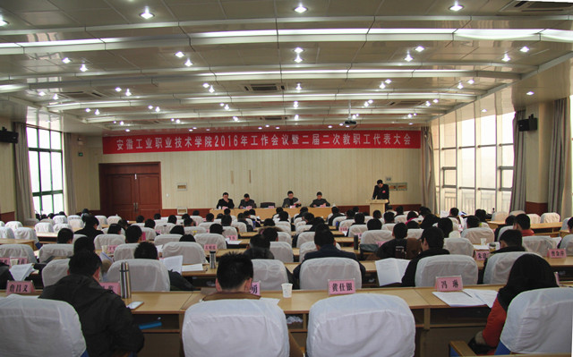 2016年1月15日,学院隆重召开了2016年工作会议暨二届二次教职工代表大会。参加此次大会的学院教职工代表75人,列席代表7人,共计82人。