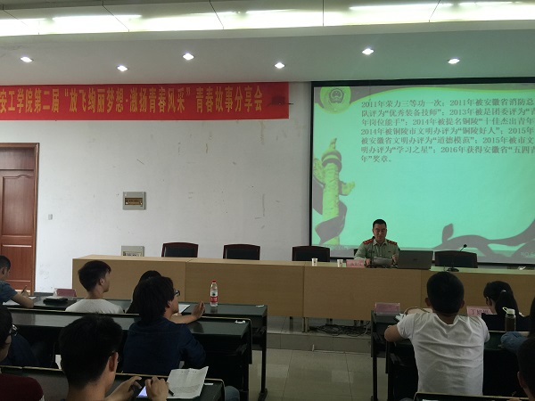 为深入贯彻落实党的群团工作会议和习总书记系列重要讲话精神,积极响应团中央对高校共青团思想引领工作提出的新要求,引导广大青年学生更好地树立和践行社会主义核心价值观,激励广大青年学生向身边的榜样学习,近日,学院举办2016年五四青年活动月系列活动之“梦想公开课”青春故事分享会。此次分享会邀请到两位铜陵市首届“青年五四奖章”获得者——铜陵市疾病预防控制中心检验师张义华医生与铜陵市消防支队车站中队综合班班长陈伶旺来校与大学生交流。