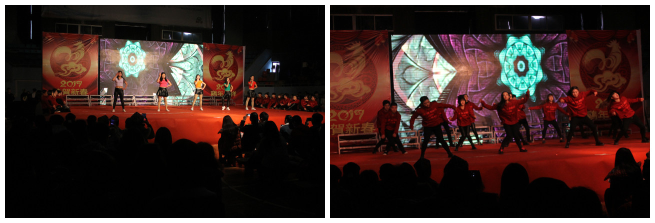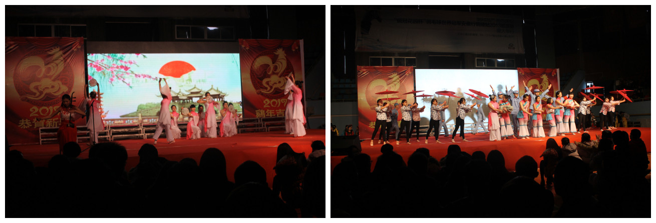 演出在喜庆热闹的开场舞《在欢庆的日子里》拉开序幕。在一片喜庆祥和、笑迎新元的氛围中,学院院长陈世虎发表了热情洋溢的新年致辞,他充分肯定了2016年学院各项工作所取得的重大成就,也展望了2017年学院建设和发展的美好蓝图,并代表学院领导班子向全院师生致以新年的问候与祝福。