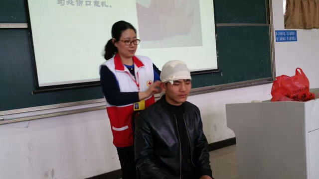 活动中,红十字会的专家为学生们详细讲解了心肺复苏、创伤救护、排除气道异物、重大交通事故、触电事故以及溺水事故的急救处理方法和自救互救技能,并在现场进行了实际操作演示,如互相做创伤救护、止血包扎练习、模拟人心脏复苏操作等,同学们积极配合红十会专家进行演示。