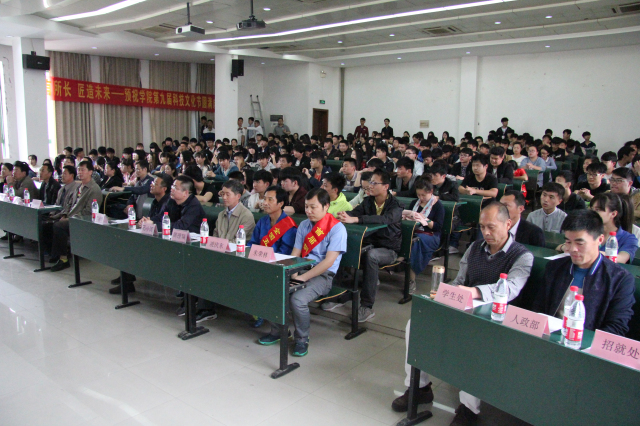 开幕式上,李庆峰副院长代表学院致辞,他指出,科技文化节的行动宗旨是把群众性活动与建设积极向上、文明健康的校园文化结合起来;把职业技能大赛与构建人文环境、发展职业教育事业结合起来;把比赛拼搏与开展社会主义核心价值观教育结合起来。希望广大学生可以用青春、活力和激情展示自己、挑战自己、超越自己,在此次的科技文化节中有所收获。在学院领导们按下启动球之后,党委书记石小河宣布第九届科技文化节正式拉开帷幕。