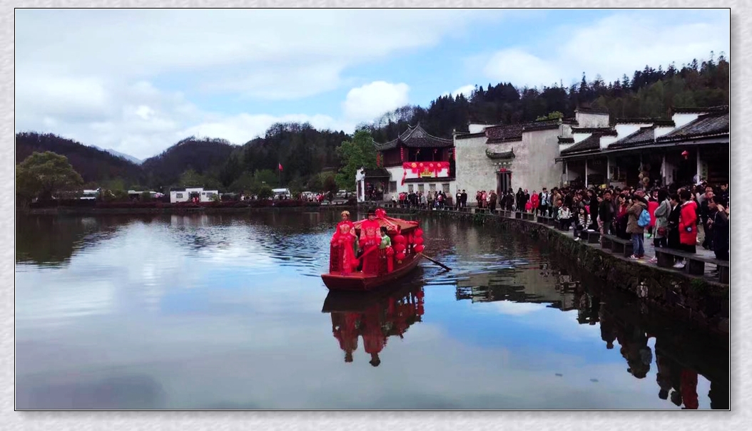 作品简介:一对新人在西递村口那只小船上游荡,接受来自全国各地人们的祝福,他们一定会幸福美满,阖家欢乐。
