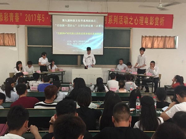 为积极宣传和营造学院建设“创新创业”的良好氛围,引导广大青年学生树立“大众创业 万众创新”的观念,通过文化活动培养校园思辨风气,展现学院学子积极进取的风采,6月9日中午,学院举办了辩题为“互联网+时代使人的生活更幸福还是更忧虑”的大学生辩论赛决赛,100多名学生观众现场观看了此次比赛。