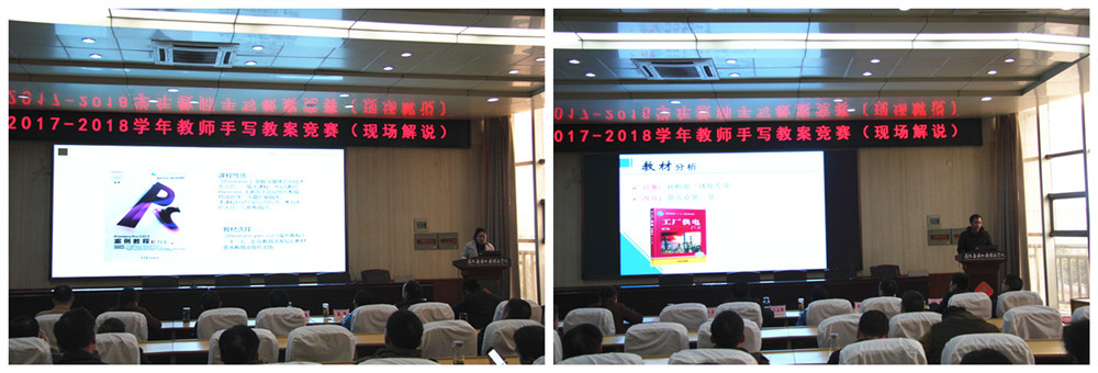 在现场解说阶段,所有老师都直观地感受到这些参赛教师不仅教案书写的漂亮,而且教学PPT制作精美,教学目标明确、重点突出、条理清晰,企业典型案例运用合理恰当,教学设计也非常出彩。