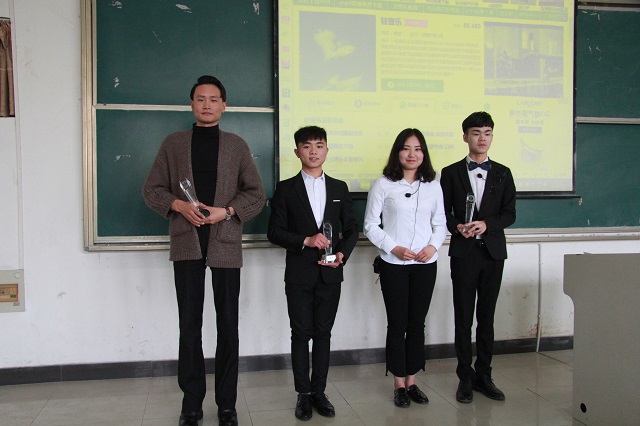 获奖同学(左起17软件班张顺、17数模班王祥、17市场营销班彭承来、17物流管理班施池)