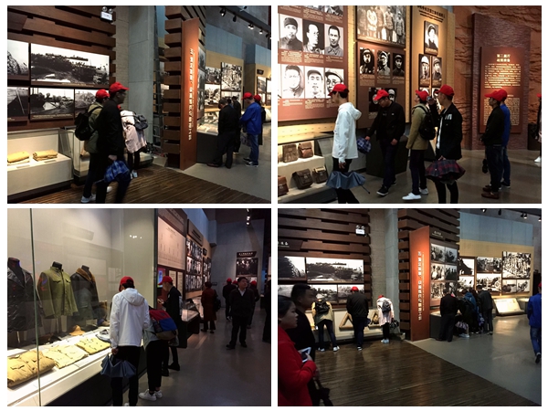 渡江战役纪念馆生动再现了渡江战役的艰难险阻和我军万船齐发勇渡长江的英雄气概。在纪念馆内,大家先后参观了解放广场、渡江战役总前委群雕,七大展厅、半景画馆、功勋长廊及千余件珍贵的革命文物。大量的文物和照片资料,让每一位参观者亲身感受到了渡江战役的全程体验和中国共产党的坚定信念与光辉历程,大家认真地看着眼前的一切,追忆波澜壮阔的革命历史,深切缅怀为祖国解放而牺牲的革命先烈。