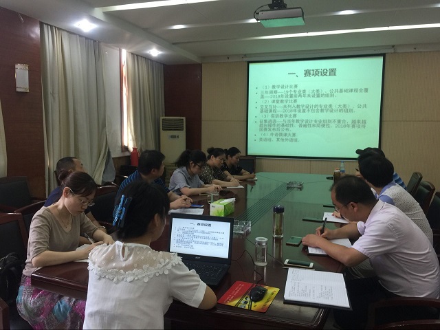 会议过程中,教务处相关人员向参赛教师介绍了2018年度徽省高职院校教学能力大赛基本情况,分别从赛项设置、竞赛环节、竞赛规则、时间节点四个方面说明今年安徽省教师教学能力大赛的具体要求,并结合自身经验向参会教师分享大赛经验,提醒参赛教师在比赛过程中需要注意的问题。