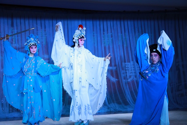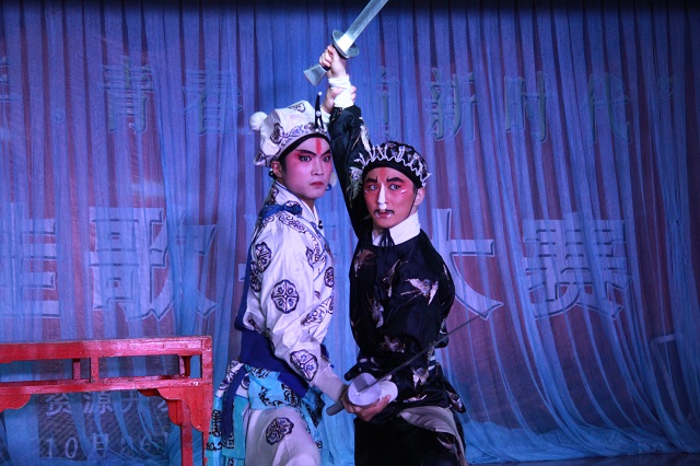 整场演出穿插各种形式的艺术表演,荟萃了中国徽剧的经典曲目,将徽风古韵演绎得淋漓尽致,充分展现了徽剧作为民族艺术瑰宝的独特魅力。演出在传统徽剧《拾玉镯》中拉开帷幕,字正腔圆的精湛唱腔和优美的身段赢得阵阵喝彩;徽剧《断桥》中,将戏剧情节与人物性格紧密结合在一起,同学们为白素贞和许仙的情深意重深深动容;传统短打武生剧目《三岔口》,唱、念、做、打无不生动美妙,演员们挥舞大刀时的神采、娴熟的武打动作赢得了观众热烈掌声。最后,国家非物质遗产传承人王丹红等青年演员表演了经典剧目《新贵妃醉酒》,演员们扎实的功底与细腻的表演,再现了这一经典京剧唱段。