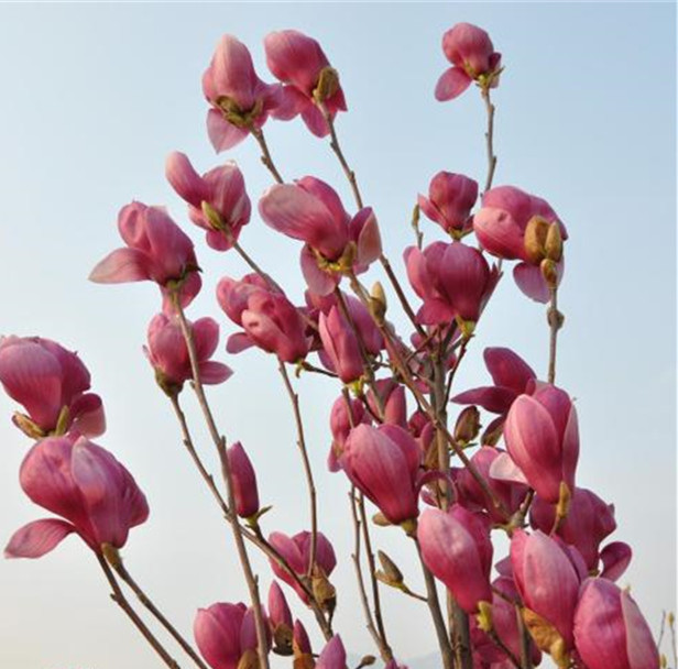 图文中心北侧围墙边,有先开花,后长叶的白玉兰、紫玉兰。