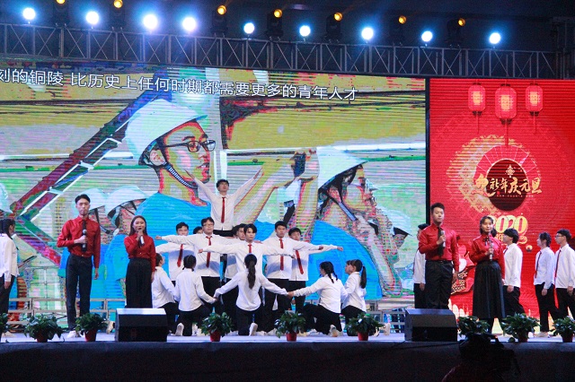 大江奔腾立潮头,铸人成事润世间。1227日下午,安徽大江教育集团2020庆元旦·迎新春文艺汇演在市体育中心隆重举行。市教体局党委委员、副局长管清华、集团全体领导、各成员单位教职员工和安工学院、安徽铜陵技师学院全体学生欢聚一堂、辞旧迎新、共贺新年。铜陵网络台同步对汇演进行了现场直播和网络直播,在线观看直播的观众更是高达1.5万多人。