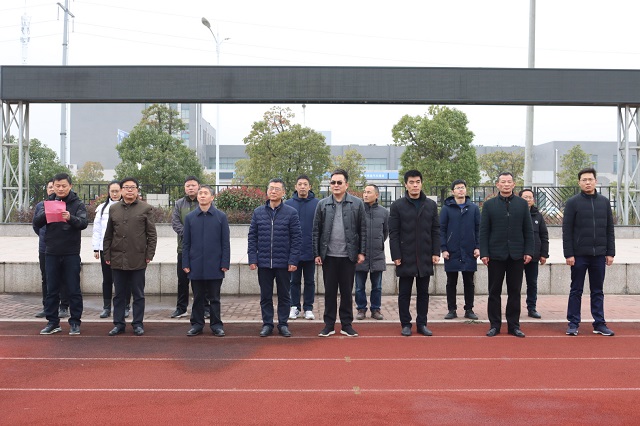 9时50分,在雄壮激昂的国歌声中,鲜艳的五星红旗冉冉升起,全体师生肃立,一同面向国旗行注目礼,表达对伟大祖国的热爱与敬意。