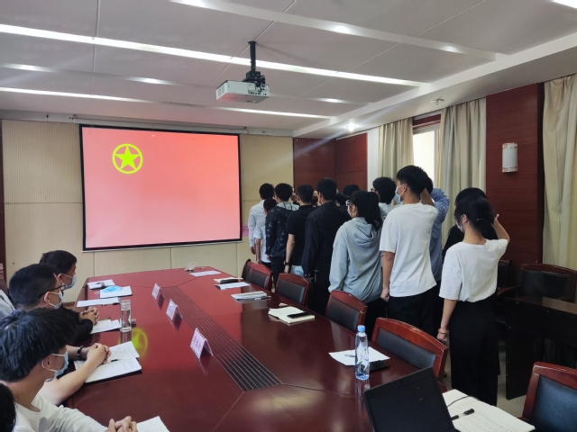 会议分为两项议程,首先举行的是新团员入团仪式,由学生处处长宣布新发展团员名单,并向新团员表示衷心的祝贺,随后由老师和团干部向新团员佩戴团徽,在鲜艳的团旗下,所有团员举起右手庄严宣誓,立志为共产主义事业而奋斗。