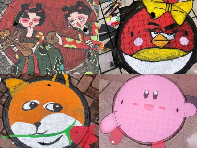 涂鸦活动由负责人安排人员任务,分组进行涂鸦。同学们都很积极,活动结束后同学们把场地收拾干净,留下了井盖上生动的图案。