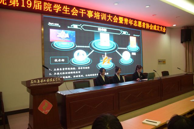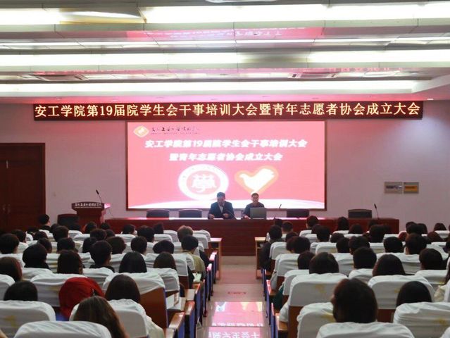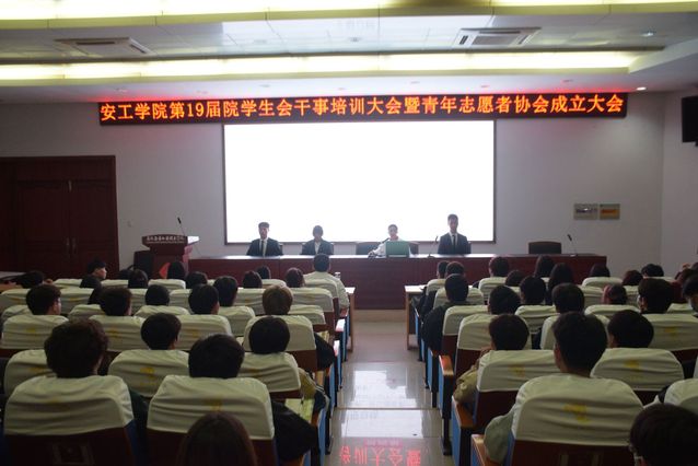 为了更好地推进学院学生会各项工作,加强学生会队伍建设,11月23日,学院团委在阶梯201教室召开安工学院第19届院学生会干事培训暨青年志愿者协会成立大会。