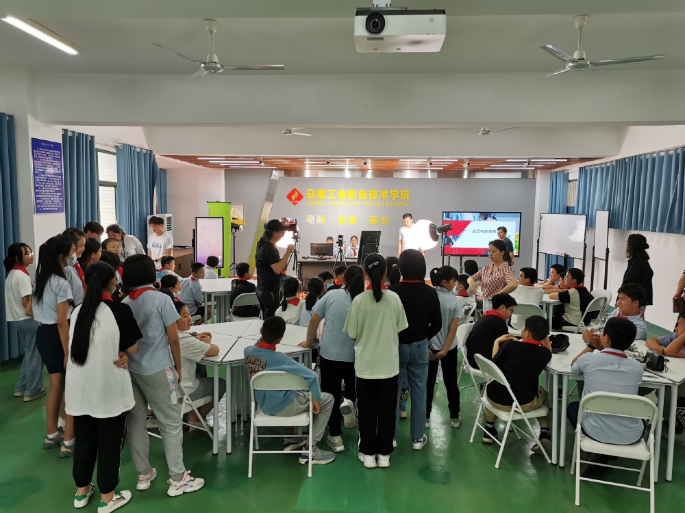 5月16日,管理工程系组织开展以“技能成就梦想”为主题的职业教育启蒙培训。来自建安小学50多名学生走进管理工程系物流实训室和电商直播实训室,在实操中体验动手的乐趣,开拓学习视野,增强对职业的认知。