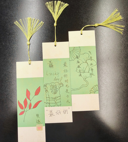本次系列活动分两个阶段进行。第一阶段是由学生自己在宿舍创作发簪,社员们充分发挥想象,用简单的材料通过不同的组合碰撞出意想不到的精彩,妆成的簪花簇拥在一起,构筑了百花齐放的春日缩影。第二阶段是学生现场制作书签,发挥想象力,用画笔在书签上绘出自己喜爱的图案,并用写上激励与祝愿的话语。