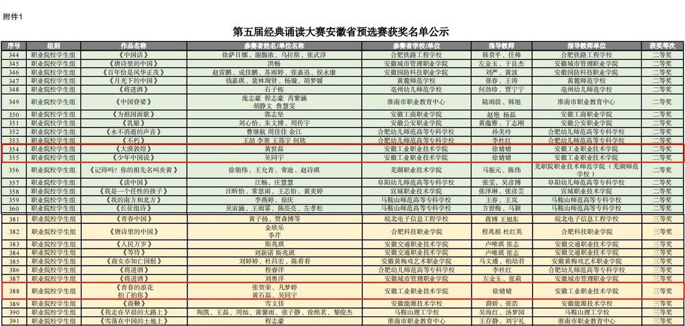 近日,第五届中华经典诵读大赛安徽省预选赛落下帷幕,我院学子再创佳绩,荣获二等奖2项、三等奖1项。