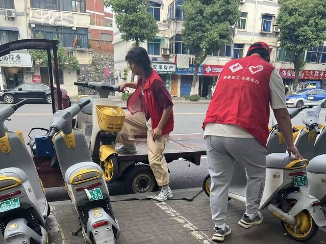 活动中,志愿者们把散乱的共享单车移至指定停车点有序摆放,引导路人规范停车。活动过程中,大家虽然都非常辛苦,但始终互相鼓励加油,并及时对不规范停车的市民、同学进行文明劝导。