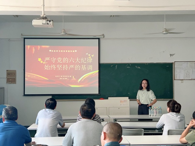 为深入学习领会新修订的《中国共产党纪律处分条例》,引导全体党员明纪法、守底线,切实把党规党纪内化于心、外化于行,6月13日,机电工程学院党支部书记为全体党员同志讲授党纪学习教育专题党课——《严守党的六大纪律 始终坚持严的基调》。