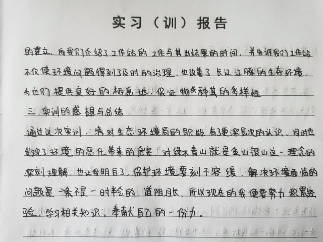 参观学习后,学生还撰写了实训报告,报告详细总结了实训期间的所学所感,学生们纷纷表示此次学习不仅开阔了眼界,也看到了环保事业的重要性和环保人的辛勤付出,更加坚定了未来从事环保工作的信心和信念。(撰稿:王小英 审核:杨书怀)