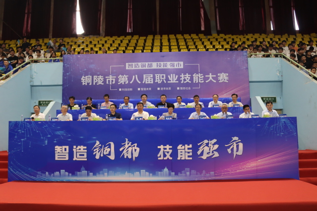9月12日上午,铜陵市第八届职业技能大赛开幕式在我院体育馆隆重举行。本次竞赛分为学生组、综合组,共设10个赛项,吸引全市十五支代表队参加比赛。铜陵市市委常委、组织部部长郑刚,副市长杨文萍,市委人才局、市人社局、市总工会、市财政局、市住建局、枞阳县政府、经开区、市农业农村局、铜官区、义安区政府、郊区政府、铜陵职业技术学院、安徽铜陵技师学院、安工学院、有色集团、铜化集团、中车铜陵车辆有限公司、铜峰电子相关领导出席开幕式。