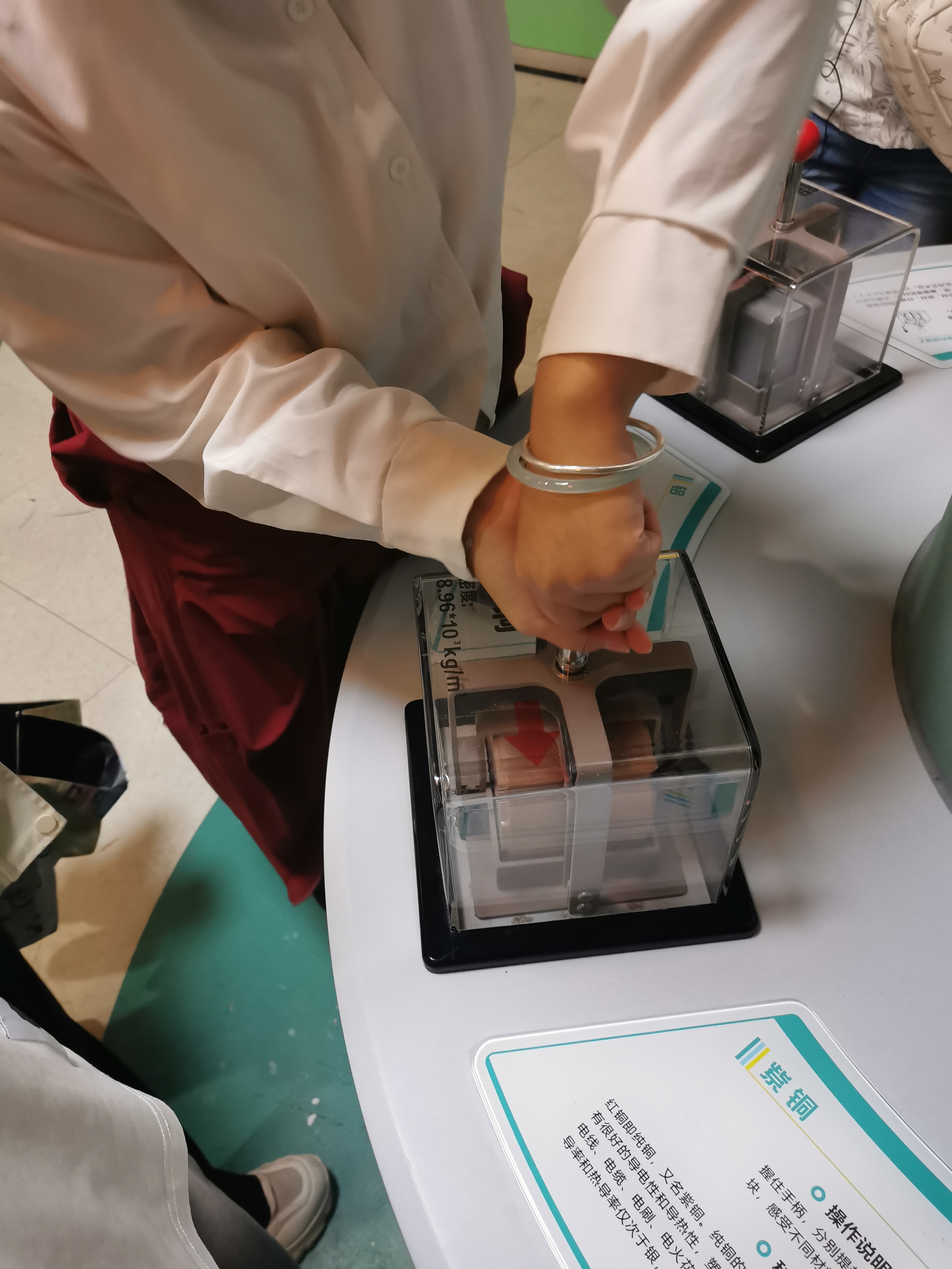 活动中,王老师带领学生参观了科技馆的其他展厅,在涉及环境保护、铜的物化性质、铜与生活及铜陵的故事等展区进行详细介绍,学生们也积极参与到各项内容的体验中。通过此次科技馆参观学习活动,学生对课本内容有了具象化的理解。