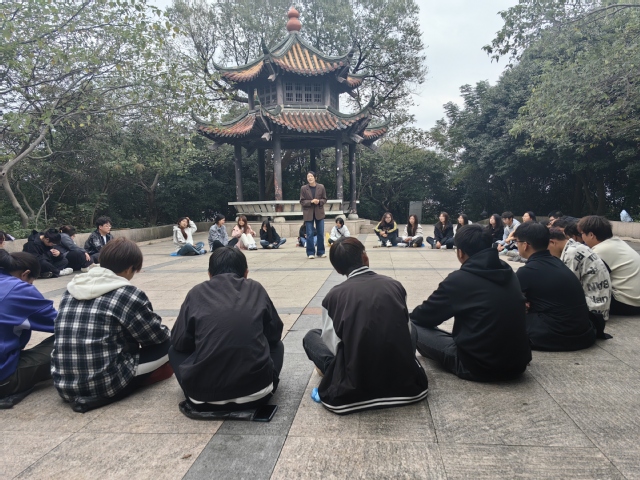 在半山腰的平台上,社员们开展了“破冰”团建活动,社团指导老师王老师和方老师分别为社员们介绍了社团的总体情况,以及护林团建的初衷,社员们轮流进行自我介绍。此次“破冰”团建不仅加深了社员们之间的相互了解,也为社员提供了一个展示自我的机会。
