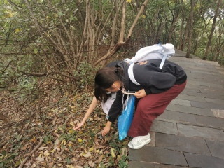 在下山的途中,社员们拿出事先准备好的垃圾袋,认真搜寻沿路两边的垃圾,用自己的行动来践行“保护环境人人有责”的理念。