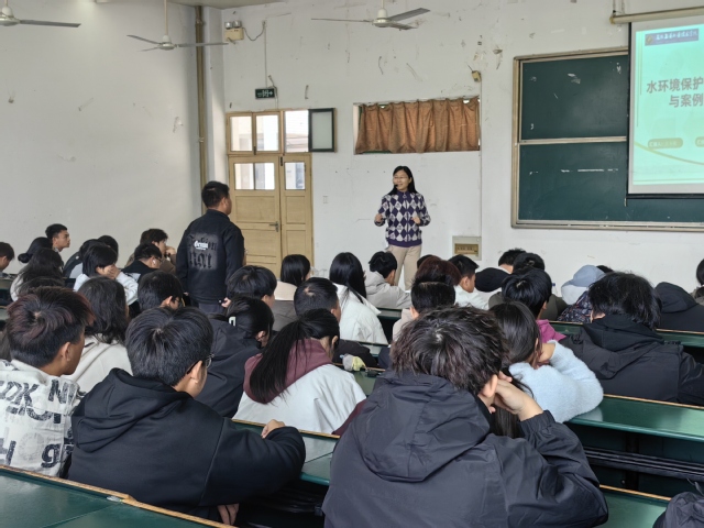讲座以《水环境保护治理实践与案例分享》为主题,王老师从引言、水环境保护基础知识、水环境保护技术与方法、国内外水环境保护政策与标准、水环境保护实践案例分析、“碳达峰、碳中和”背景下的水环境治理、未来趋势与挑战、结论与讨论等八个方面展开讲述,为学生带来了一场集理论知识与案例分析于一体的水环境环保治理体验。
