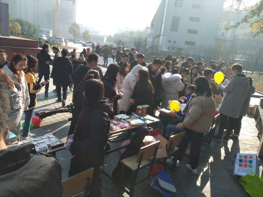 同学们将商品和桌子搬到学思园进行摆放,拉好横幅,开始售卖。学生慢慢入场,商品售卖有序的进行着。同学们大部分都很积极,每一件商品的卖出都给同学们带来了喜悦和自豪感,体验到了交易的乐趣和辛苦,更锻炼了口才和胆量。