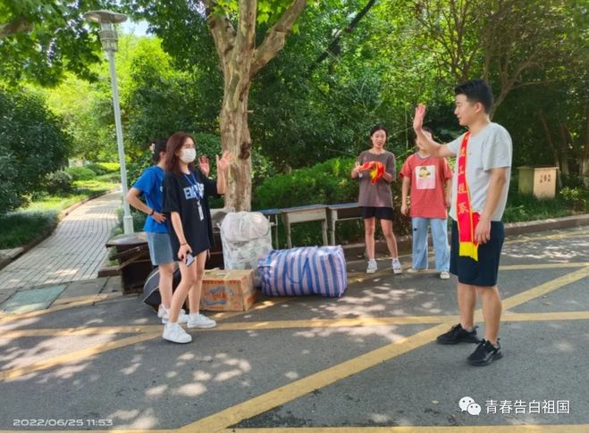 活动前夕,志愿者们将新疆籍实习学生全部拉入提前建好的微信群,并统计好实习学生具体离校时间,再根据离校时间,统一安排好志愿者提供“上门服务”。活动当天,志愿者们早早便来到新疆籍毕业学生寝室,不畏楼层高,不惧行李重。即使六月底的铜陵炎热难挡,气温一度达到38摄氏度以上,可再炎热的天气也不能抵挡志愿者的脚步。新疆籍学生深切感受到志愿者们的温情送别,说道:“天气很热,但是不及大家送我们的真情热;行李箱很重,但是不及大家对我们新疆籍学生的情深意重”。
