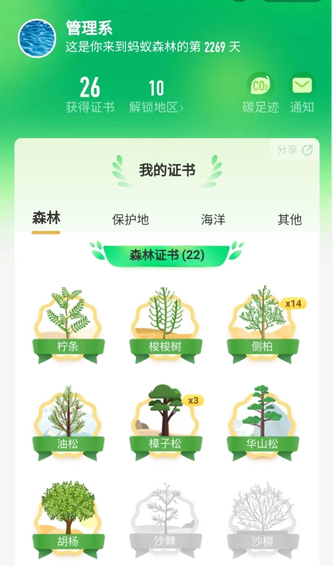 2022年,管理工程系利用线上线下互动的方式,开展植树活动,探索出在新冠肺炎疫情期间保护生态环境志愿活动的新模式。2022年度管理工程系共种植40棵树,品种包含胡杨、侧柏、华山松、油松、樟子松等。本次活动运用支付宝蚂蚁森林开启了线上云植树,以“合种”先锋林或同学林的方式,让同学们都能够加入种树队伍一同灌溉。号召广大学生践行习总书记“绿水青山就是金山银山”理念,做一名合格的绿色环保践行者、传播者、建设者。