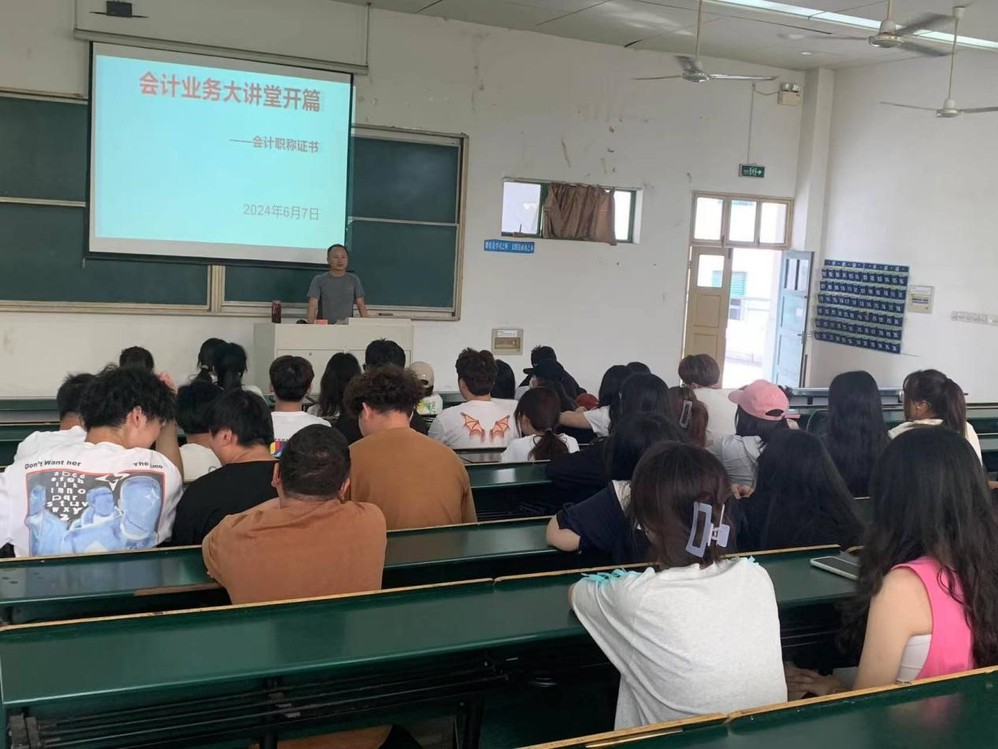 2024年6月7日下午刘汉周老师在教学楼阶梯教室203成功举办了一场题为“会计业务大讲堂开篇——会计职称证书”的讲座,23会计1班、23会计2班、23会计3班、23财务班共计80余人参加了此次活动,讲座全程围绕会计职称考试也即全国会计初级资格考试的考试体系、报名条件、考试技巧展开。