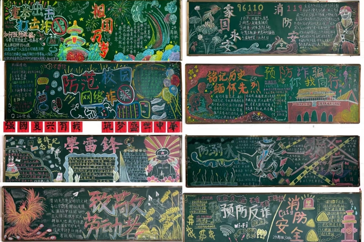 本次比赛得到了西湖校区全体师生的广泛关注和积极参与。在辅导员的指导下,各班同学利用课余时间精心筹备、发挥创意和才华,设计出一幅幅主题鲜明、图文并茂、形式多样的黑板报作品。黑板报主题涵盖爱国主义、防溺水教育、消防安全等多个方面。同时,还需要专设“防范电信诈骗”板块,通过生动的文字、形象的图片和精美的设计,将安全知识巧妙地融入其中,既具有知识性,又富有趣味性和教育性。