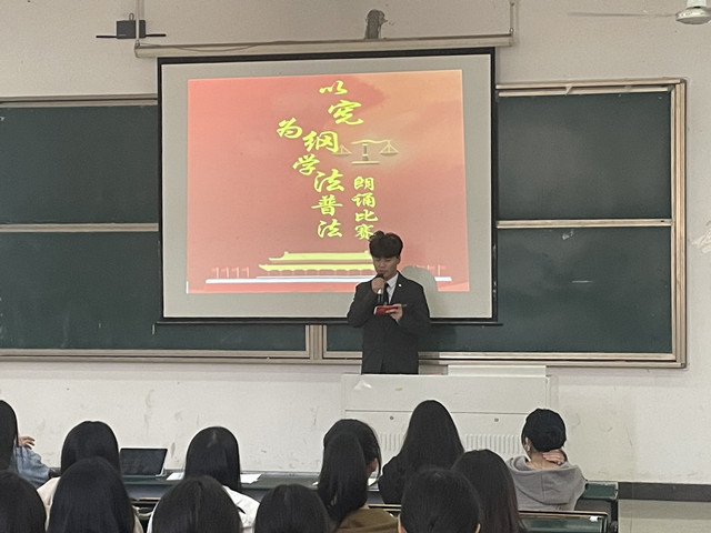 为了进一步加强大学生宪法宣传教育,并且能够在大学生中大力弘扬社会主义法治精神、培养社会主义法治理念,引导广大学生成为自觉学法、尊法、守法、用法的新时代好公民,方圆法律社团联合海子经典诗文诵读社团于2022年10月23日下午1:00在阶梯教室103举办了“以宪为纲 学法普法”诵读比赛活动。