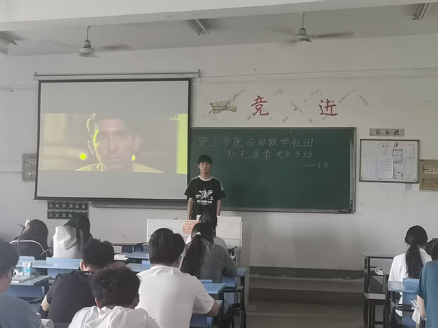 知识是没有边界的,每一次交流都是对未知领域的一次探索,让同学们发现数学新奇的一面,在2025年4月11日下午2:30在天井湖校区实训楼s北610教室应用数学社团成功开展“知无涯者”观影活动。本次活动由社长李广地、副社长鲍兴雨共同组织,参与本次活动的成员共有46名同学。
