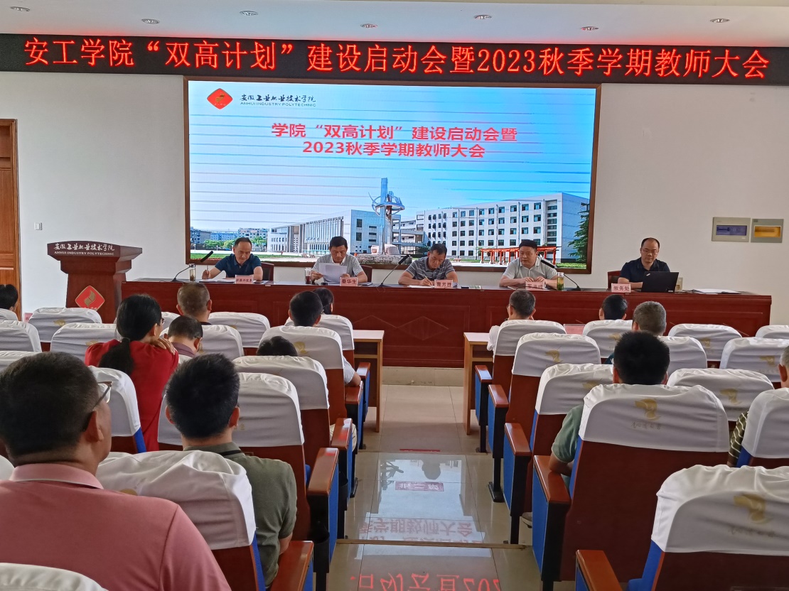 为着力推进学院高质量发展,动员全院教师全力以赴投入“双高计划”建设,同时安排部署2023年春季学期教育教学工作,2023年9月1日学院在教学楼201报告厅召开召开“双高计划”建设启动会暨2023年秋季学期教师大会。学院副院长曹芳胜、副院长秦华生、党委委员罗海峰以及全院专兼职教师参加了会议,会议由罗海峰主持。