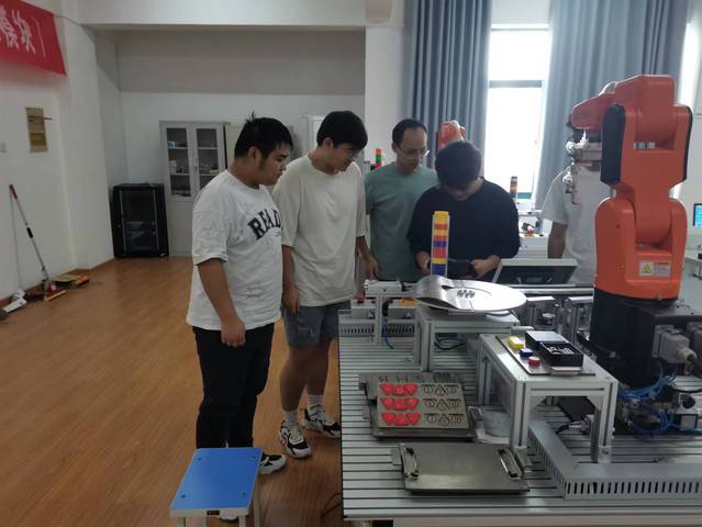 为检验我院21级学生的工业机器人应用能力,让学生了解工业机器人基本原理和应用技能为目标,熟练掌握工业机器人的基本操作和编程,完成工业机器人典型装配应用的示教编程;展示学生在开发规范、综合运用多方面知识、问题分析与处理等方面的职业素养。6月6日晚上19:00,机电工程学院机电一体化技术专业《工业机器人应用》技能竞赛在工业技能中心北楼306实训室成功举办。
