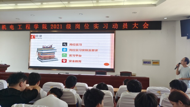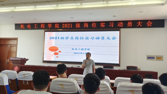 为贯彻落实学院教学任务,切实推进2021级学生岗位实习工作有序开展,加强学生对岗位实习的认识和了解,6月9日下午16:40,机电学院在阶梯201教室召开了2023年电气类专业岗位实习动员大会,机电学院分管教学和学生工作负责人及2021级机电一体化技术、电气自动化技术和物联网应用技术3个专业的224名学生出席了本次动员大会。