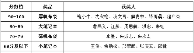 本次活动特别设置了丰富的奖品,评奖分数档将依据首次答题分数计算,以激励广大师生积极参与。具体奖品和获奖名单如下: