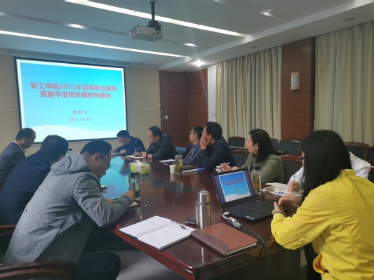 为贯彻全国职业教育大会精神,落实《国家职业教育改革实施方案》、《职业教育提质培优行动计划(2020-2023年)》和《安徽省职业教育改革实施方案》等文件要求,建立健全高等职业教育质量年度报告(以下简称年报)制度,根据《关于做好2022年职业教育质量年度报告编制、发布和报送工作的通知》(教职成司函[2021]37号)文件,学院于2021年11月3日上午在第一行政楼一楼会议室召开2021年质量年报编制专题会。党委委员罗海峰、办公室、学生处、教务处(质控处)、实数中心、培训部、招就处等相关部门的负责人参加了会议。