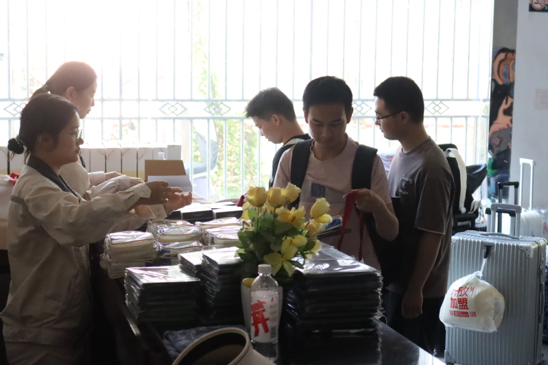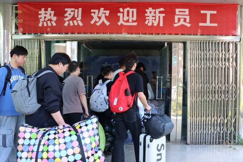 抵达中车长江铜陵车辆有限公司后,企业热情地组织了欢迎仪式,全体学生于公司门口合影留念。在工作人员的引导下,学生们随后前往宿舍区域办理入住手续。企业提前为学生准备了必要的生活用品。