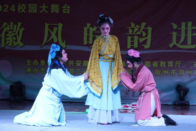11月12日下午,学院迎来了一场别开生面的文化盛宴,2024年校园大舞台---“徽风皖韵进高校”专场演出活动。本次活动由中共安徽省委宣传部、安徽省教育厅、安徽省文化和旅游厅共同主办,宿州市泗州戏剧团和学院承办;学院党委副书记黄仕银出席活动并致辞,学生处、团委、二级院系等部门负责人及400余名师生代表观看了整场演出。