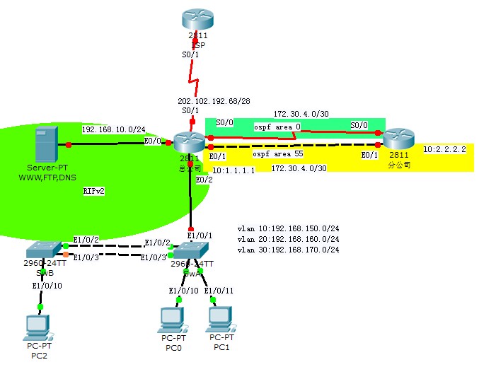 zongbu | E 0/2 | SWA | E 0/1 | 以太网线 |