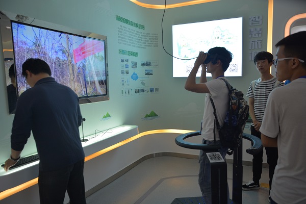 云计算中心参观结束后师生们又来到了铜陵智慧城市体验馆。管理员首先给老师和同学们介绍了智慧城市“五个一”的总体架构。然后带老师和同学们在综合管理厅、智慧农业、智能创造、智慧港航、智慧旅游、智慧出行等展区进行了亲身体验。优美的环境、尖端的科技、优良的交互性能迅速点燃了同学们求知的欲望。纷纷亲身体验,感受智慧科技的魅力。