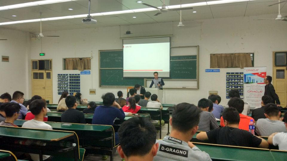 我系邀请了ORACLE(合肥)双创基地CTO梁传威先生于2018年4月19日19:00在教学楼阶梯教室201开展了以“第四次工业革命下的机遇与挑战”为主题的指导讲座。参与本次讲座的有我系16级软件技术专业的学生。